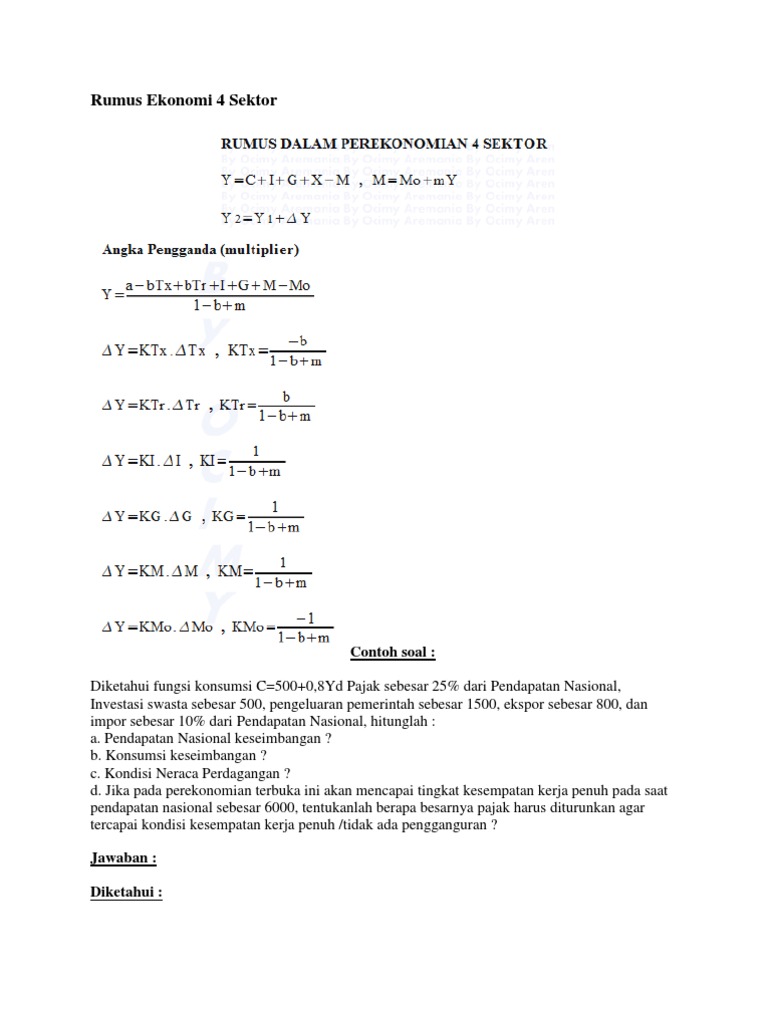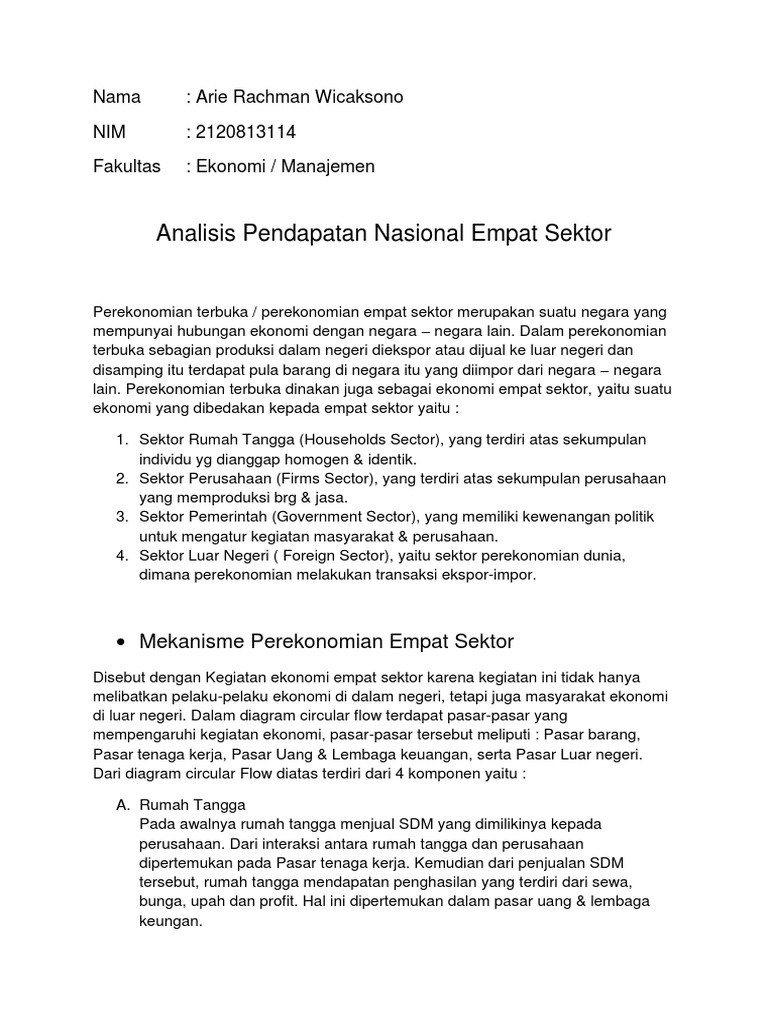 Rumus Ekonomi 4 Sektor Docx Rumus Ekonomi 4 Sektor Contoh Soal Diketahui Fungsi Konsumsi C 500 0 8yd Pajak Sebesar 25 Dari Pendapatan Nasional Course Hero
