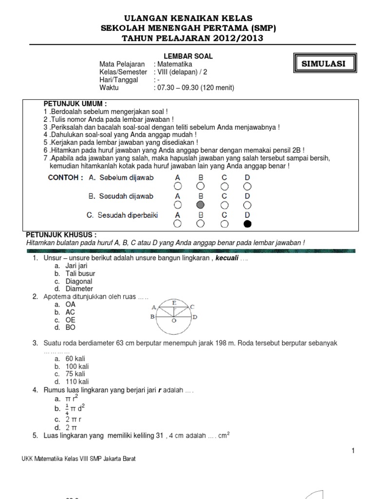 Kisi Kisi Soal Dan Kunci Jawaban Matematika Smp Kelas 8 Semester Genap Kurikulum 2013 Didno76 Com