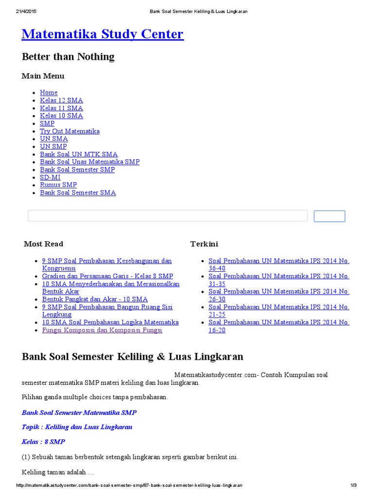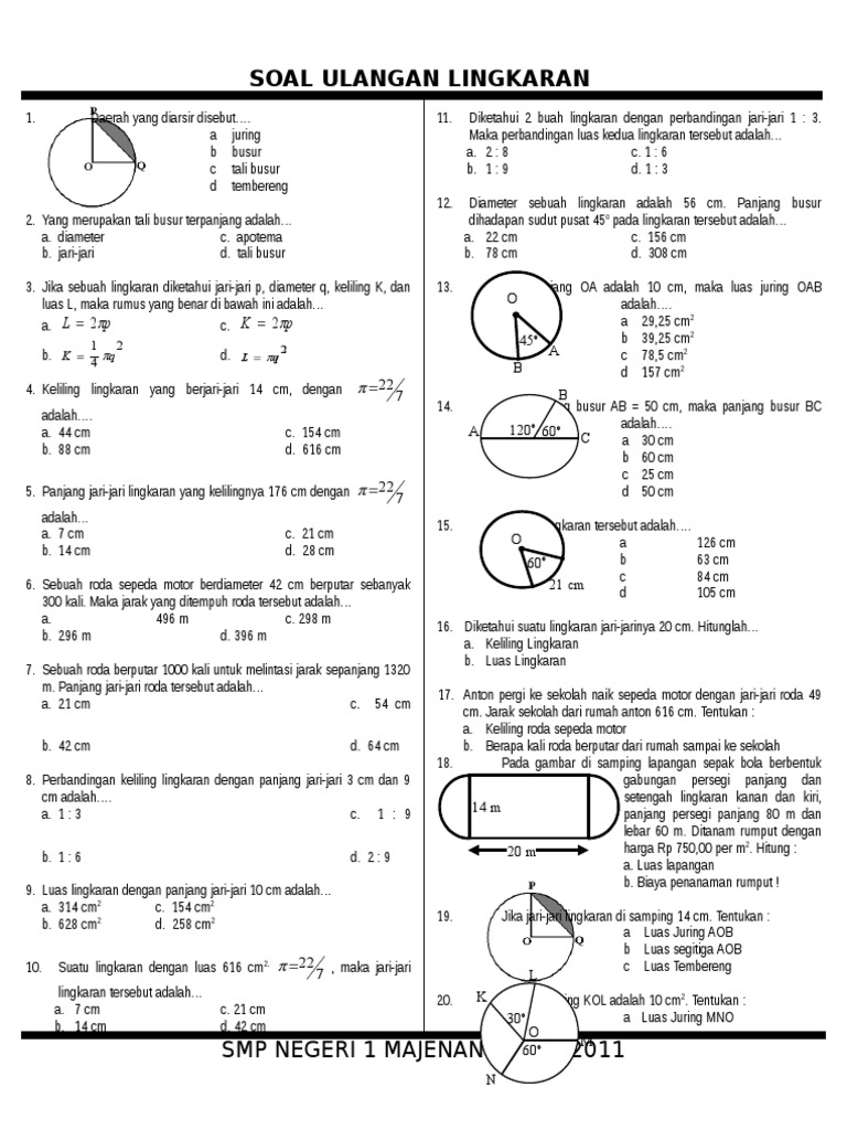 Pelajaran Soal Rumus Keliling Luas Lingkaran Wardaya College