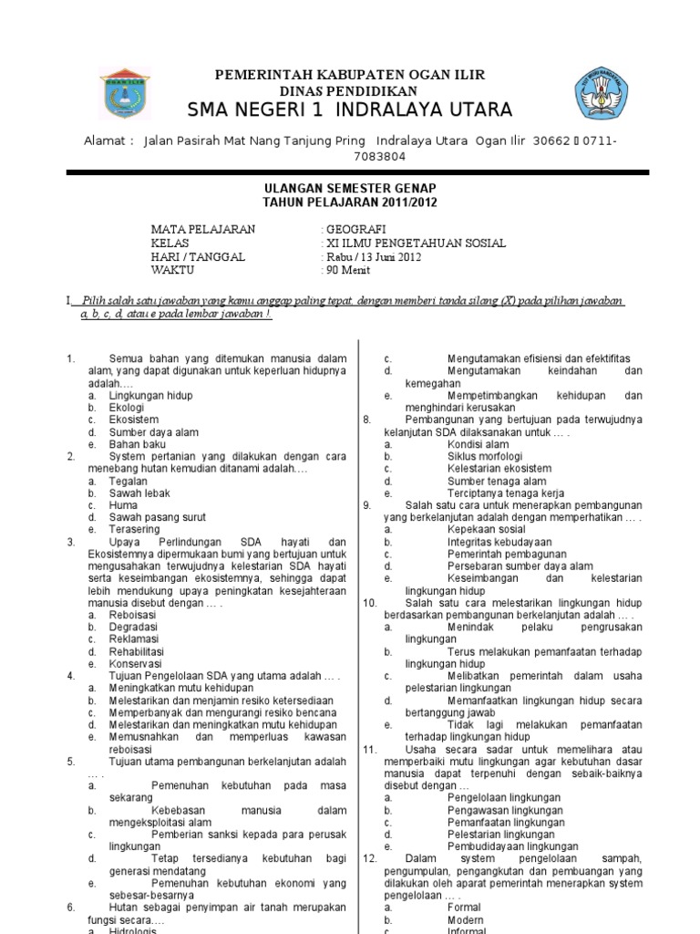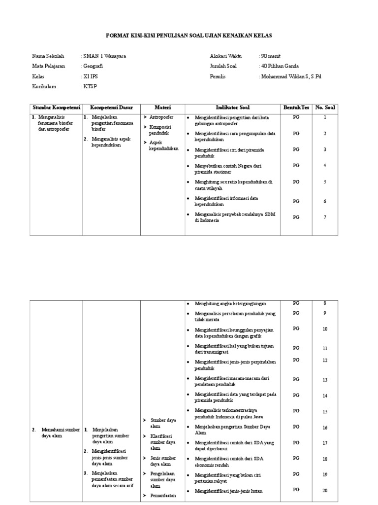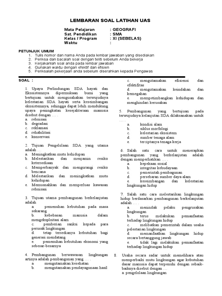 Kisi Kisi Pas Geografi Kelas 11 Tahun 2019 2020 Raja Soal